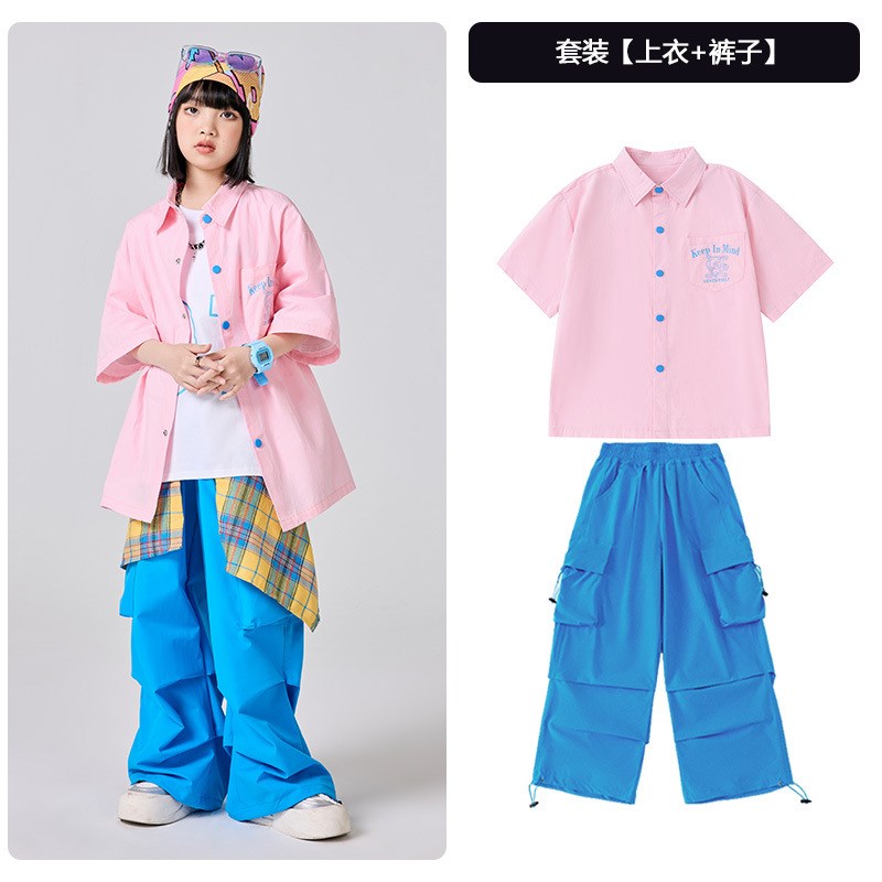 六一街舞儿童潮服演出服少儿嘻哈新款衬衫套装女童爵士服表演服装