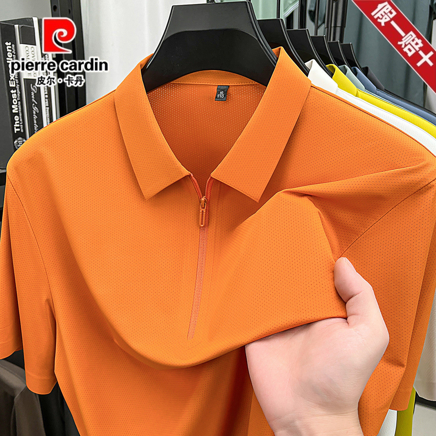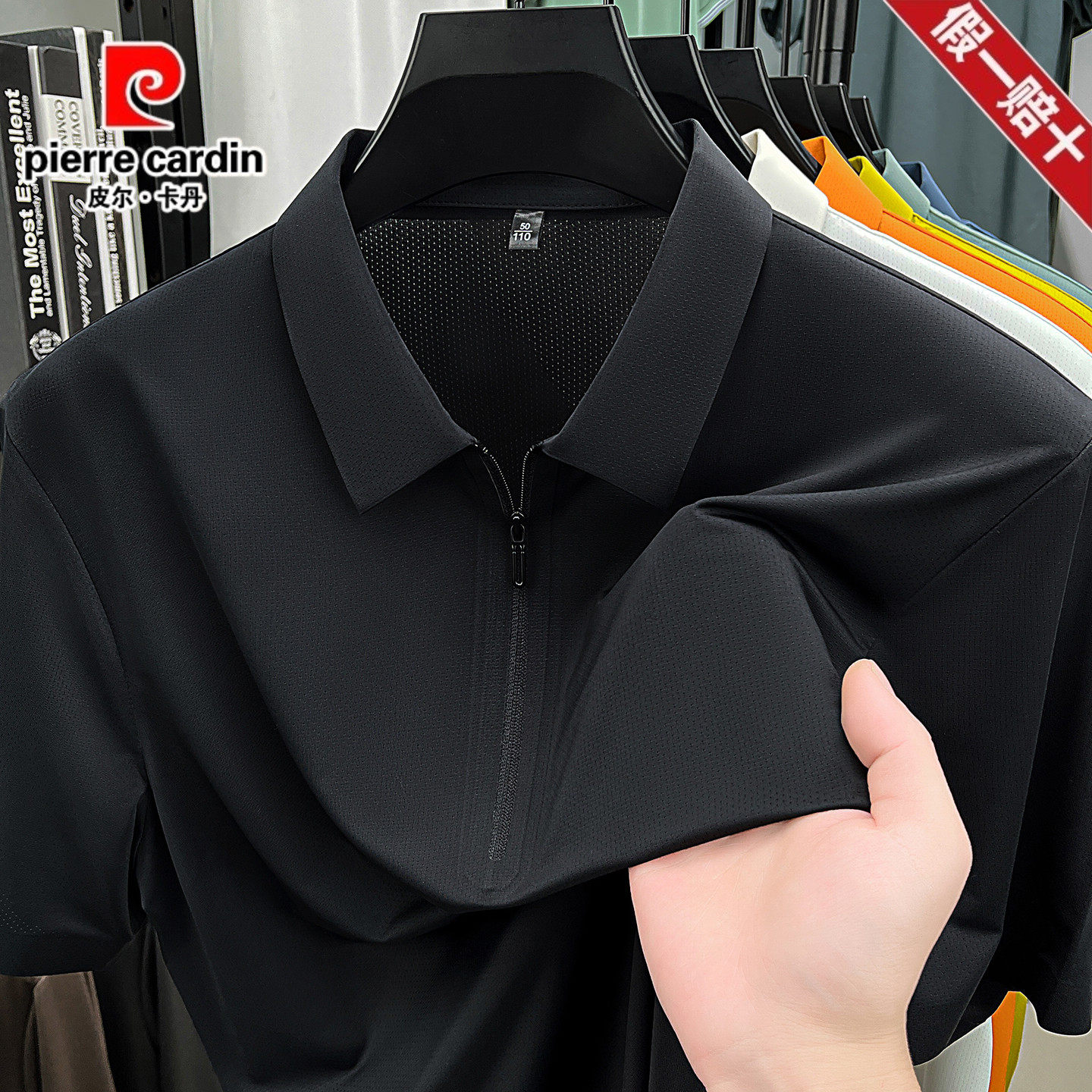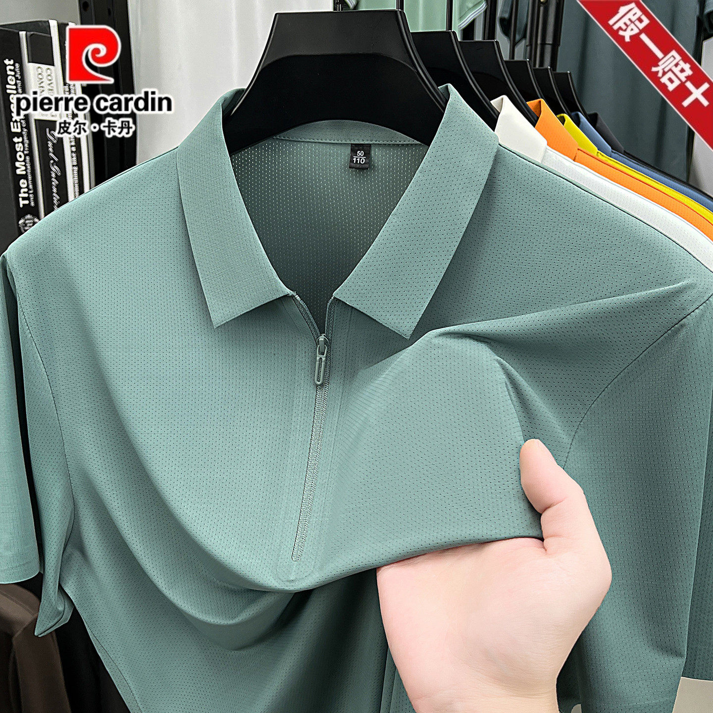 皮尔卡丹男士冰丝短袖T恤夏季新款网眼透气POLO衫拉链翻领速乾衣