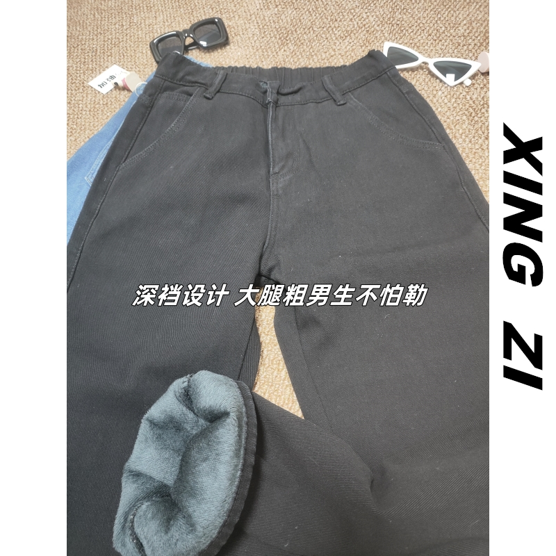 美式复古加绒牛仔裤男生直筒宽松九分裤秋冬季潮流百搭休闲长裤男