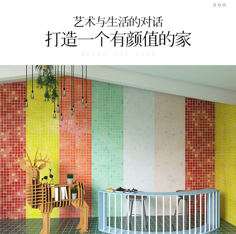 幻彩陶瓷马赛克白粉绿黄阳台卫生间阳台背景墙烤肉店新品瓷砖