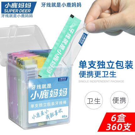 小鹿妈妈牙线棒单支独立包装牙线棒家庭装牙签6盒360支
