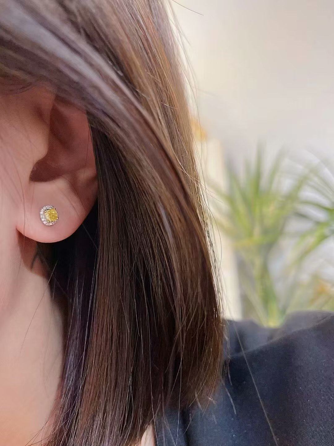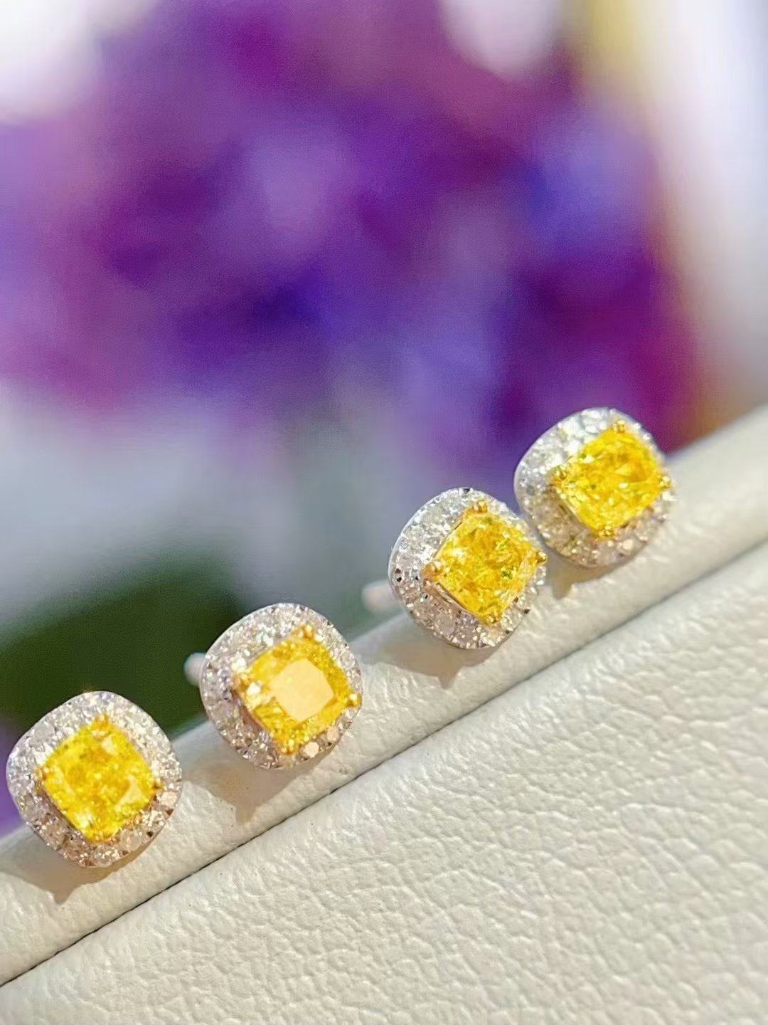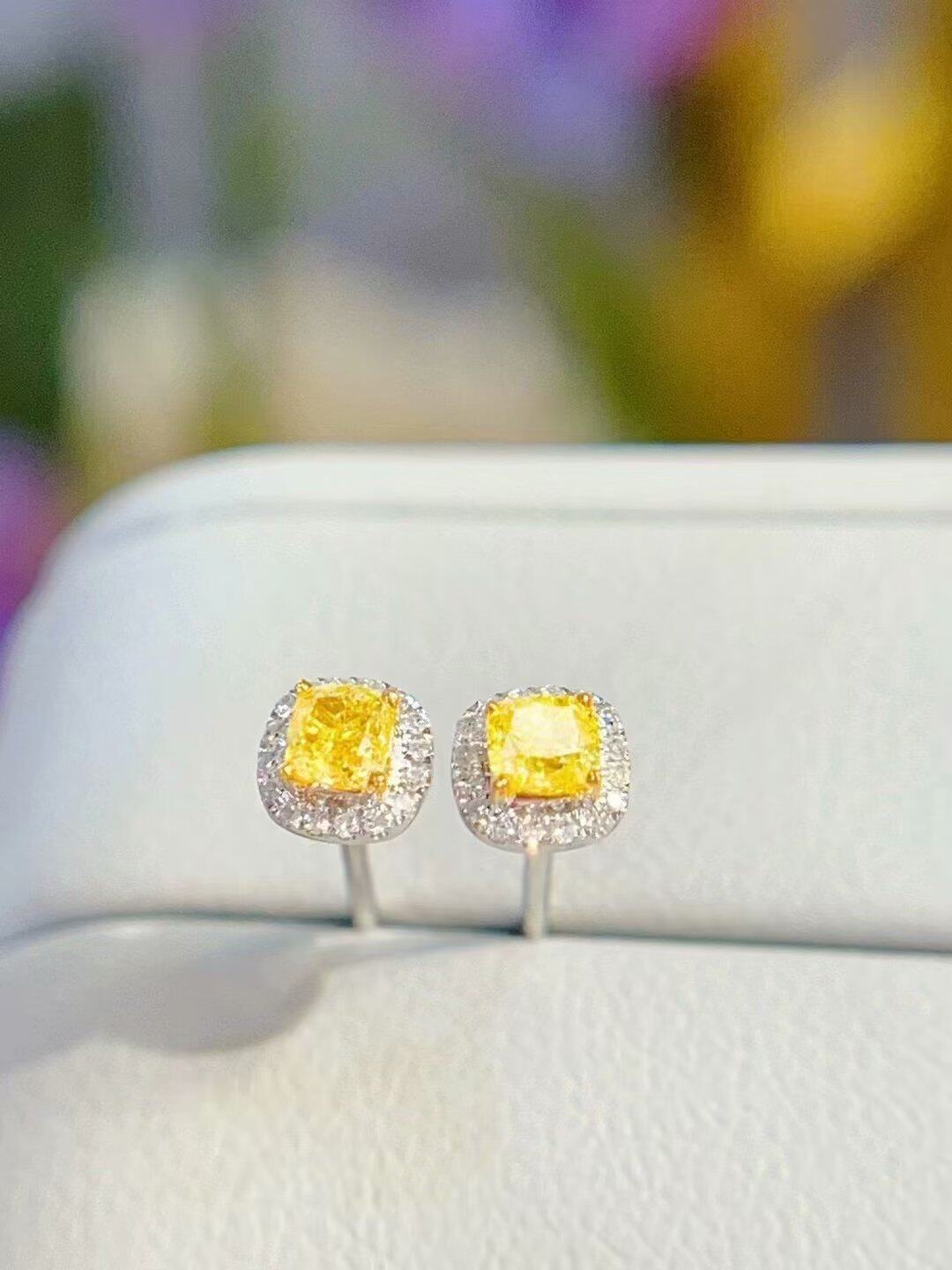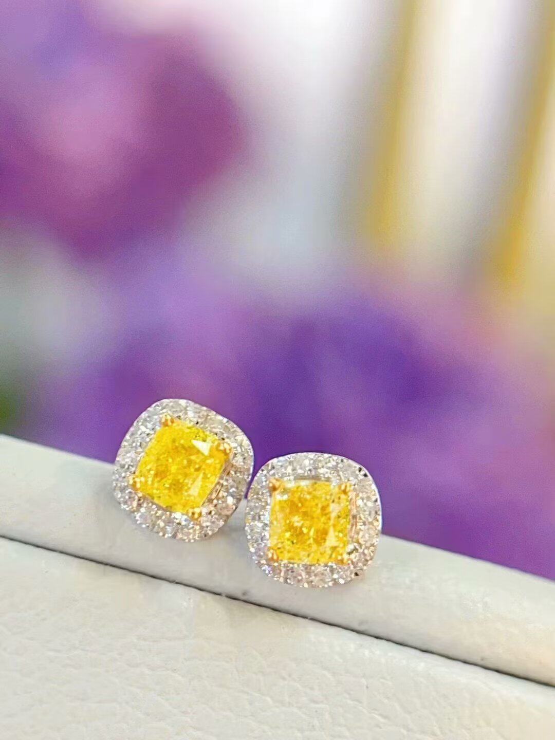 18K金女镶0.5克拉天然南非高品质钻石黄钻耳钉耳环真金真钻送证书