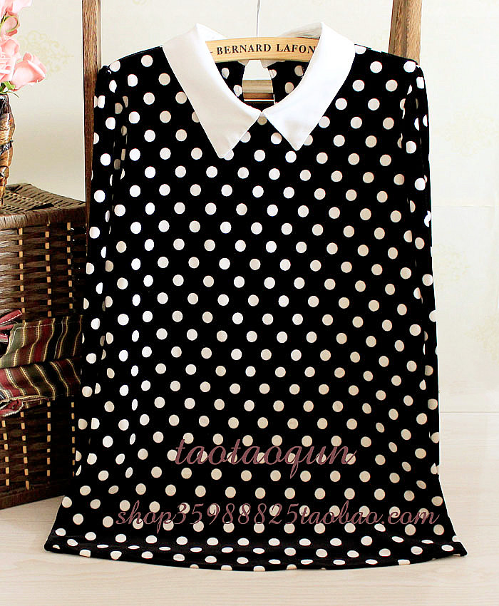 波点翻领打底衫长袖雪纺衬衫