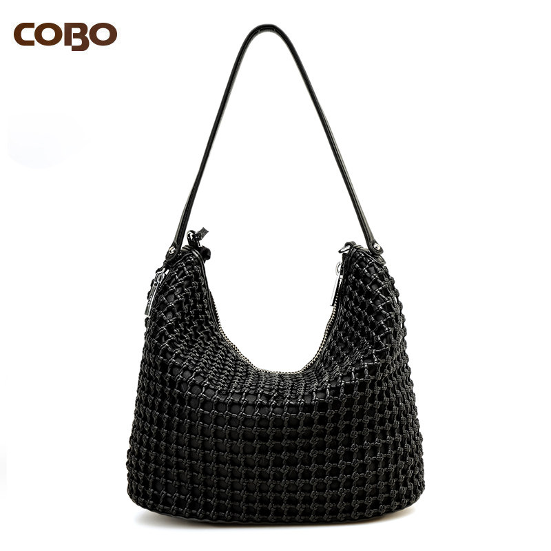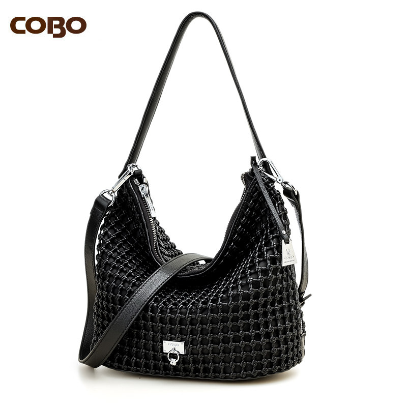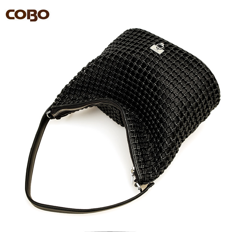 COBO/蔻尔宝头层牛皮手工立体编织女包 欧美休闲单肩斜挎女包