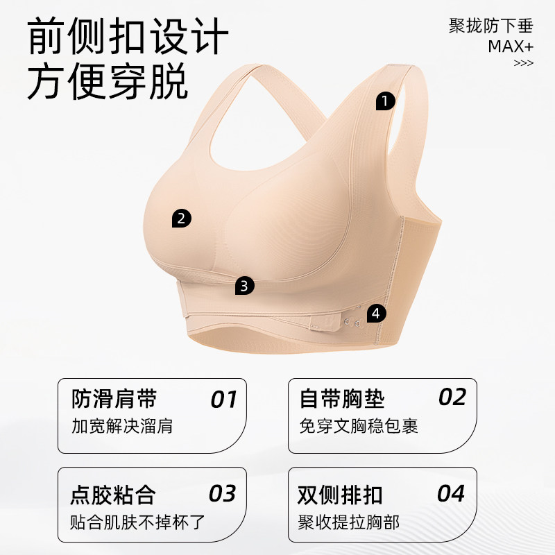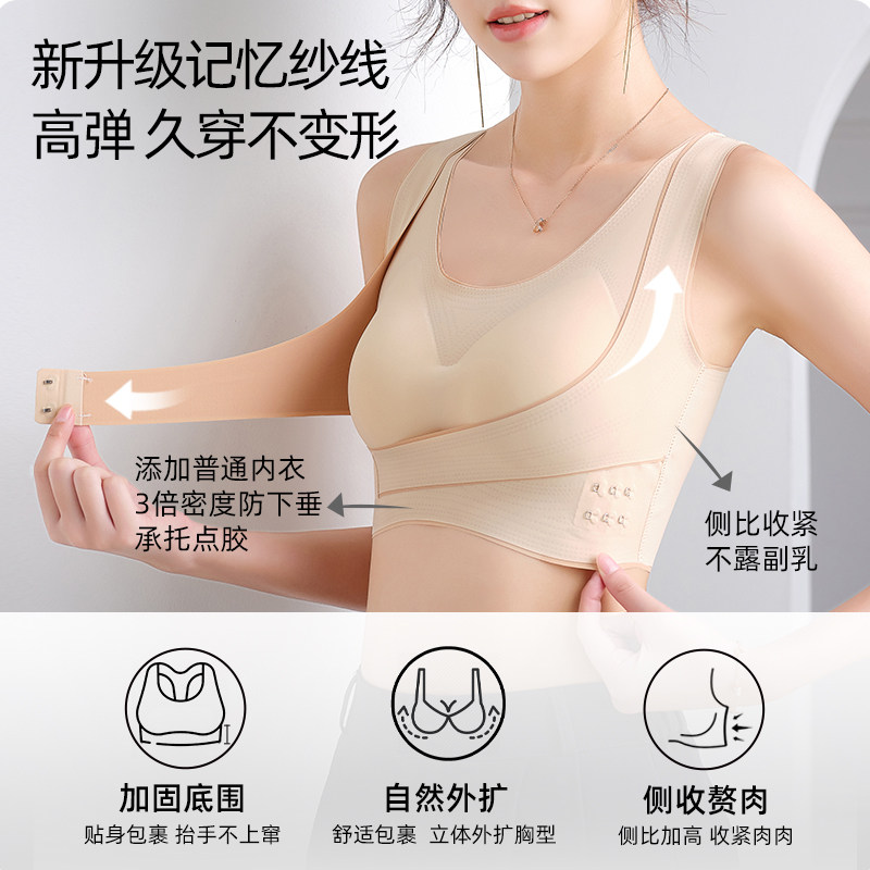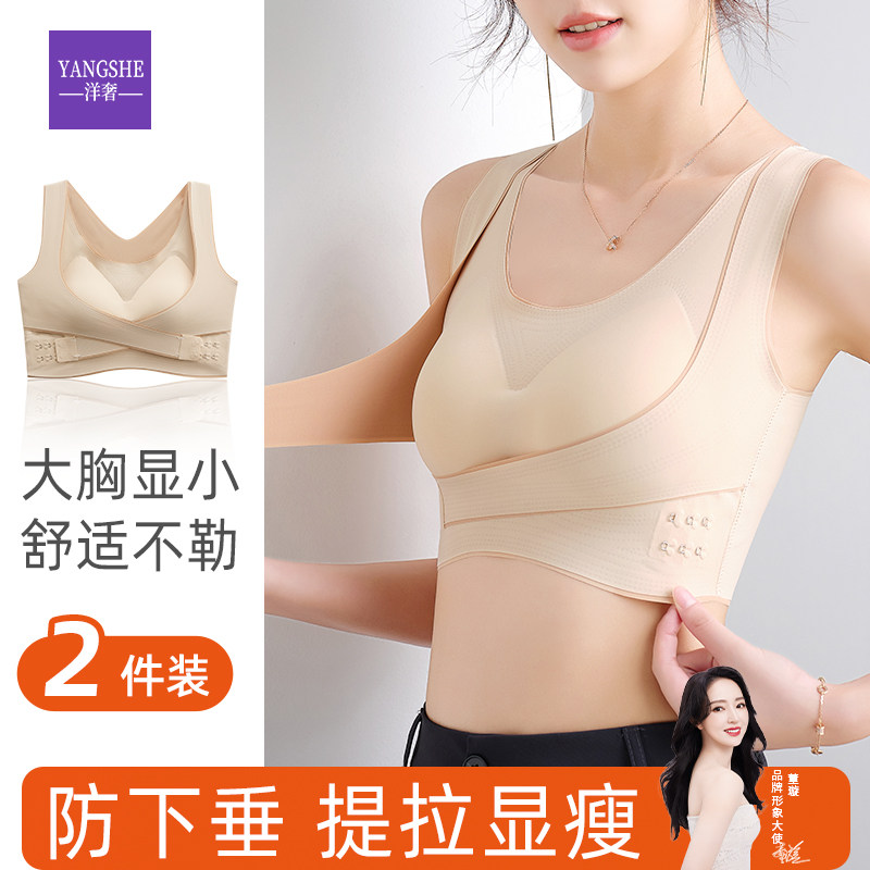洋奢塑形防下垂女士内衣无钢圈大胸显小聚拢收副乳运动防震文胸罩