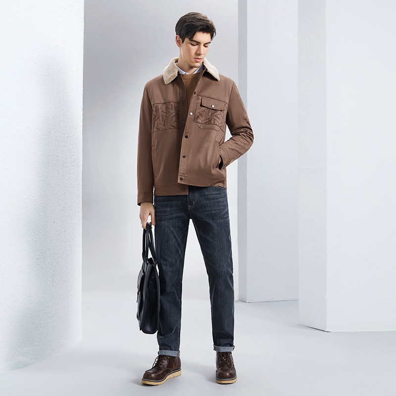 柒牌男士翻领夹克秋冬季新款中青年工装史上 休闲商务保暖厚外套