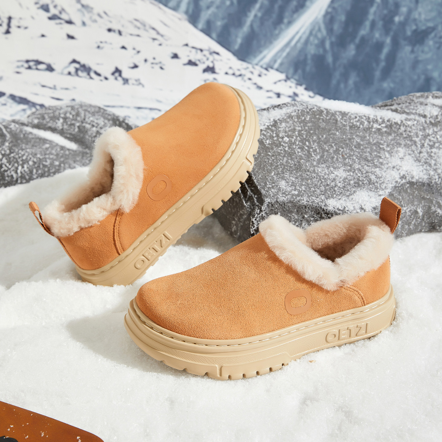 OETZI皮毛一体雪地靴女冬季厚底保暖棉鞋男低帮大头鞋懒人乐福鞋