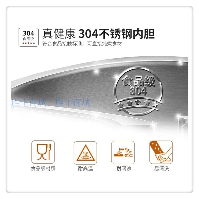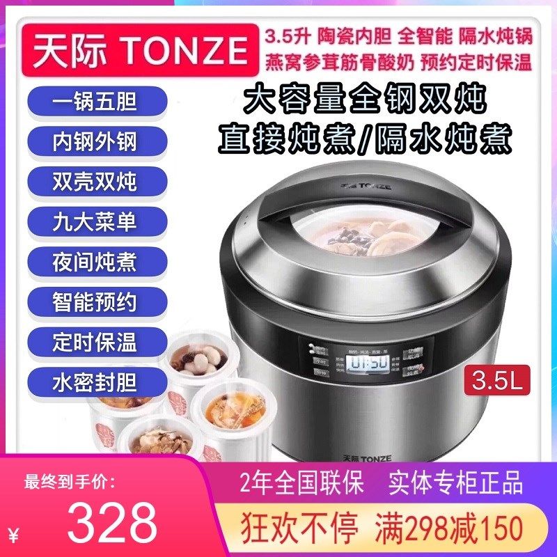 天际304不锈钢隔水炖盅4-6人陶瓷1锅5胆全自动煮粥煲汤电炖锅3.5L