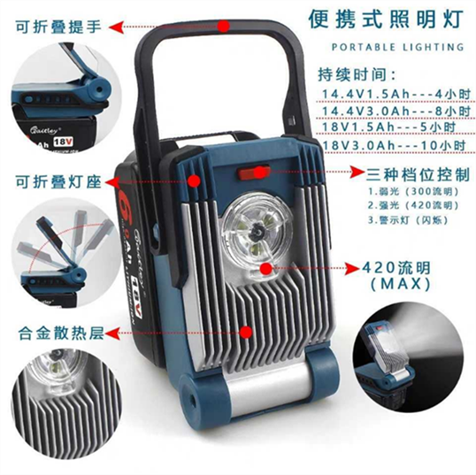 牡田得伟米沃奇大有快充USB转接头14.4V 18V/20V工作灯强光照明灯