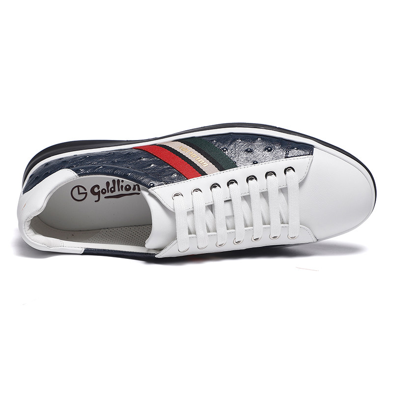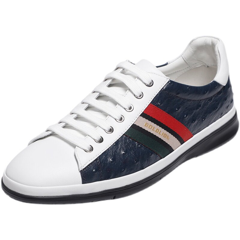 金利来男鞋2024秋季新款正品真皮系带鸵鸟纹运动休闲皮鞋男板鞋