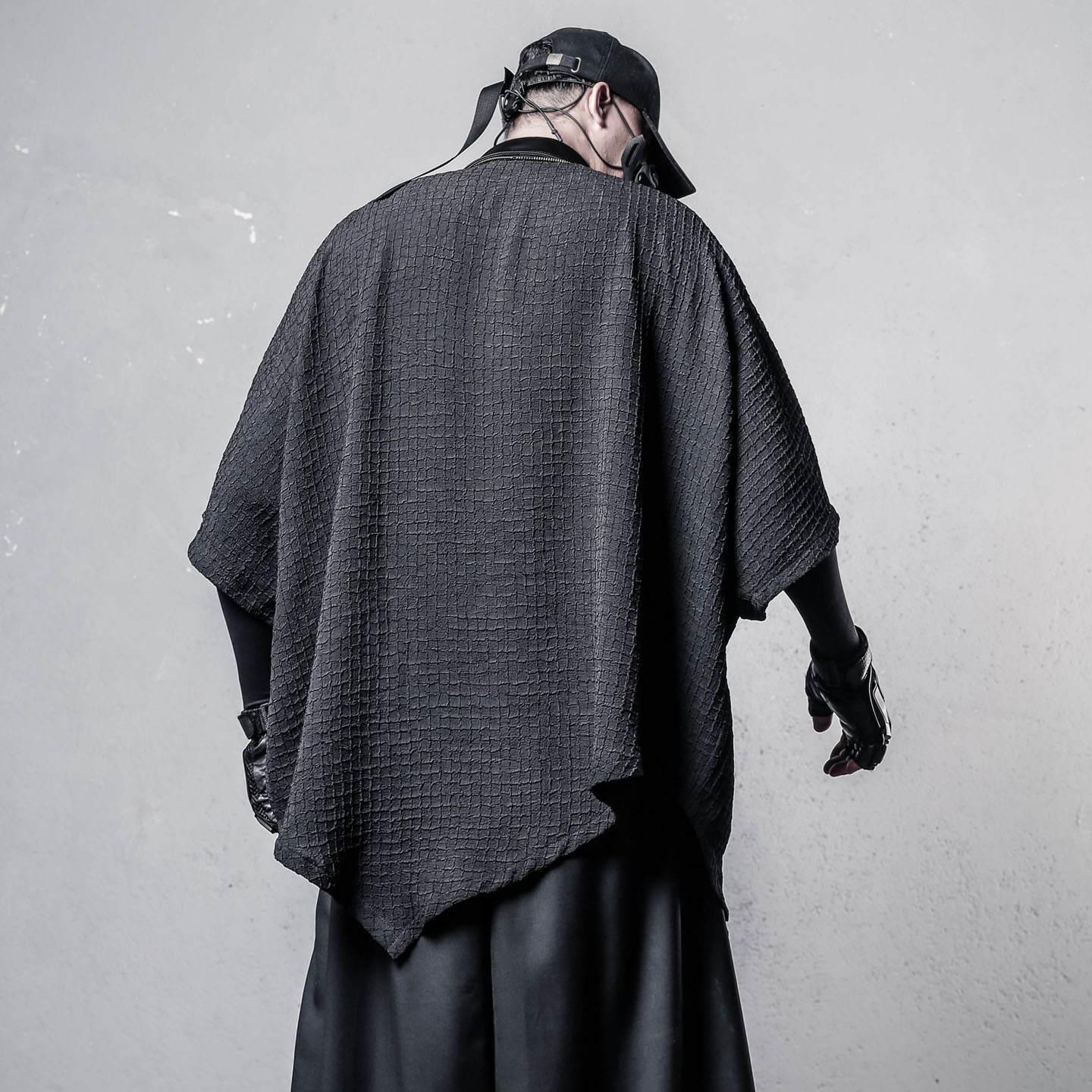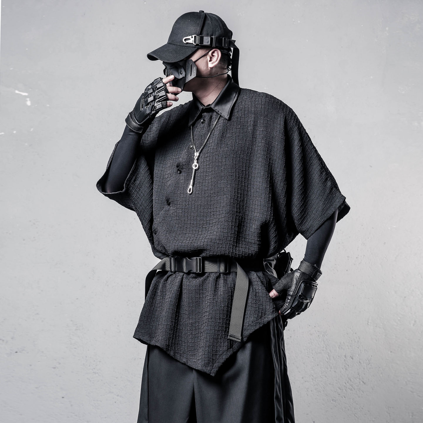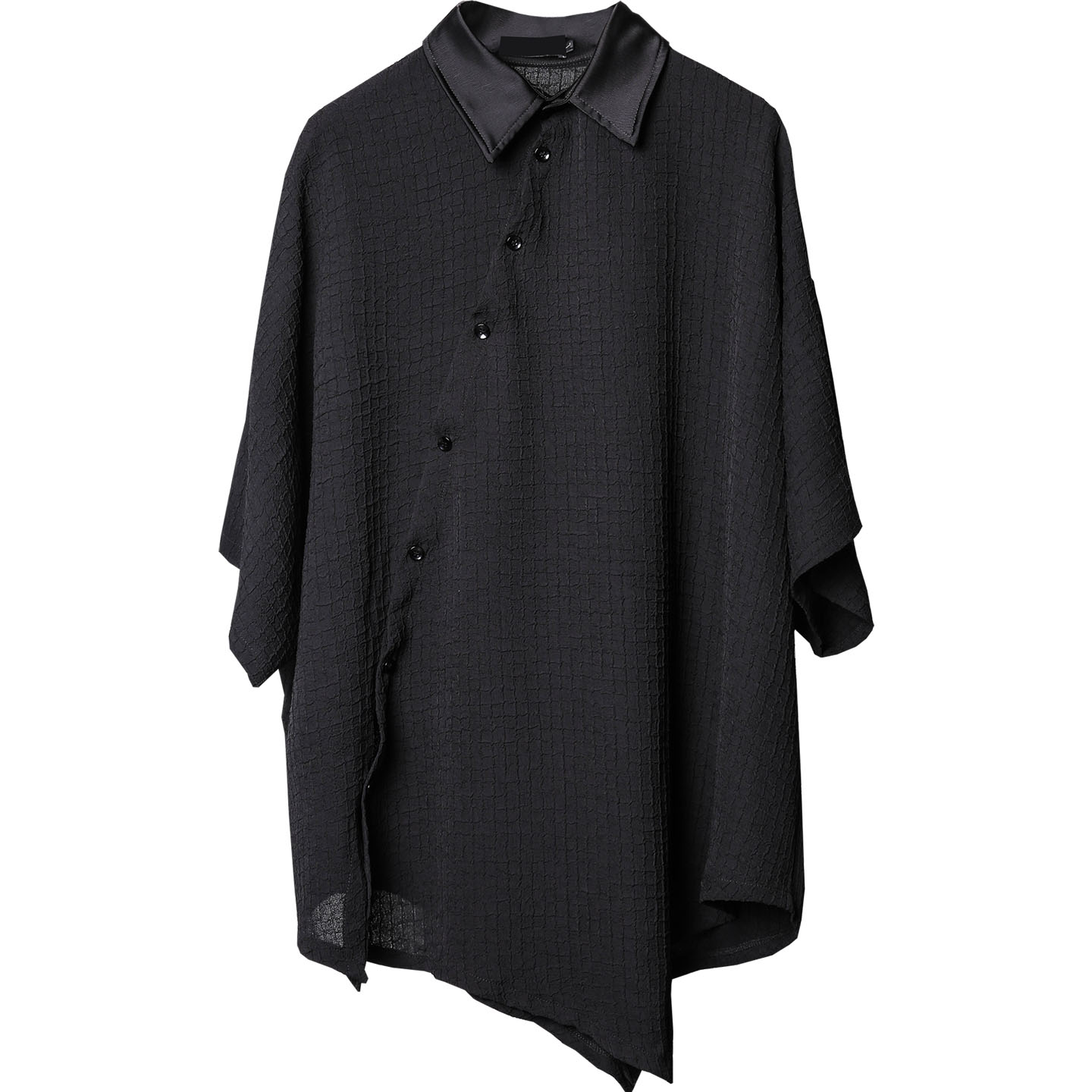 小众山本风不规则设计肌理宽松短袖衬衫夏季流行暗黑系蝙蝠袖衬衣