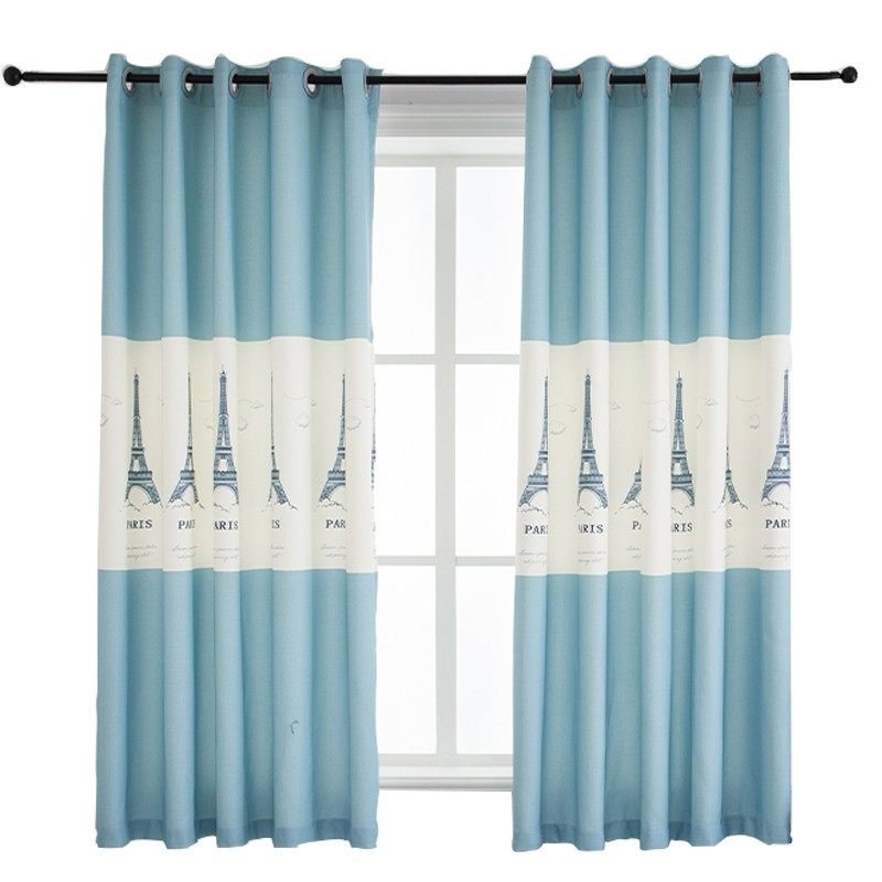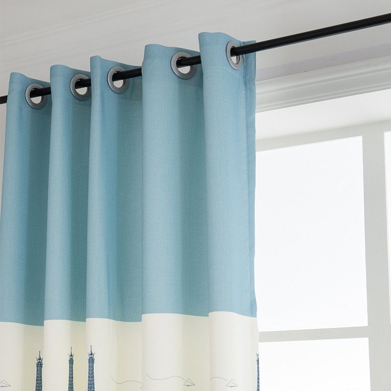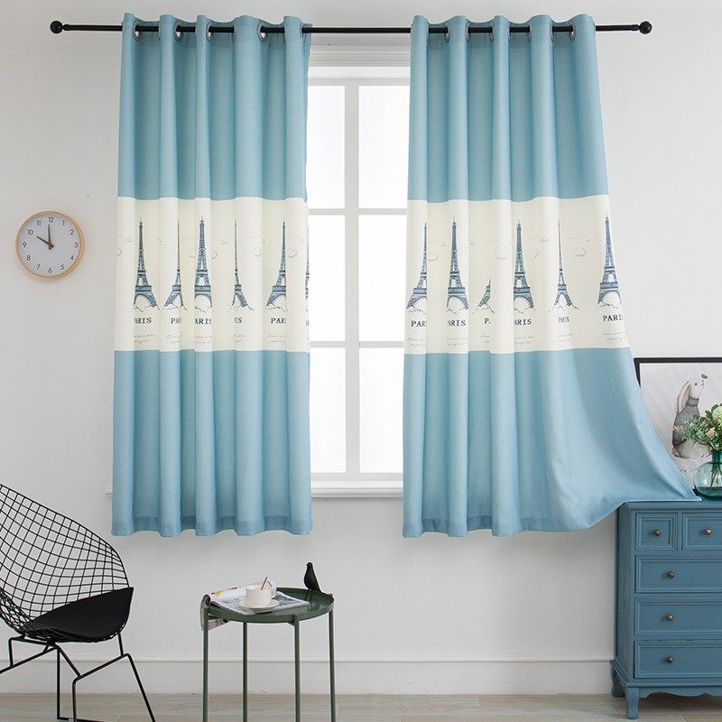 2020新款卧室遮光短帘淡蓝色铁塔房间宿舍出租屋时尚简约百搭窗帘