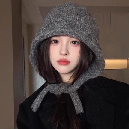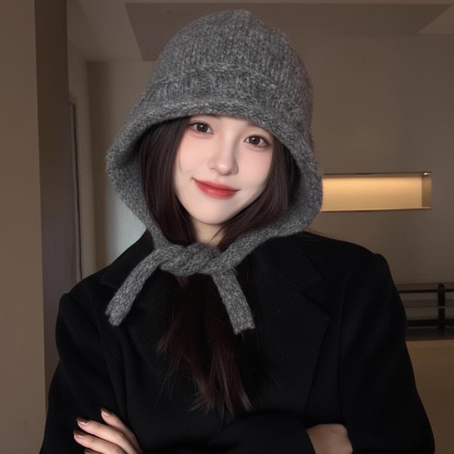 针织帽子女秋冬骑车保暖护耳毛线帽韩系大头围显脸小巴拉克拉法帽