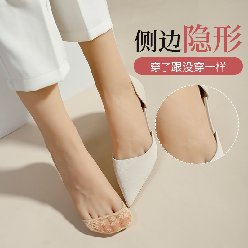 橙乙吊带蕾丝船袜女纯棉不掉跟防滑薄款肉色半掌浅口隐形袜子夏季