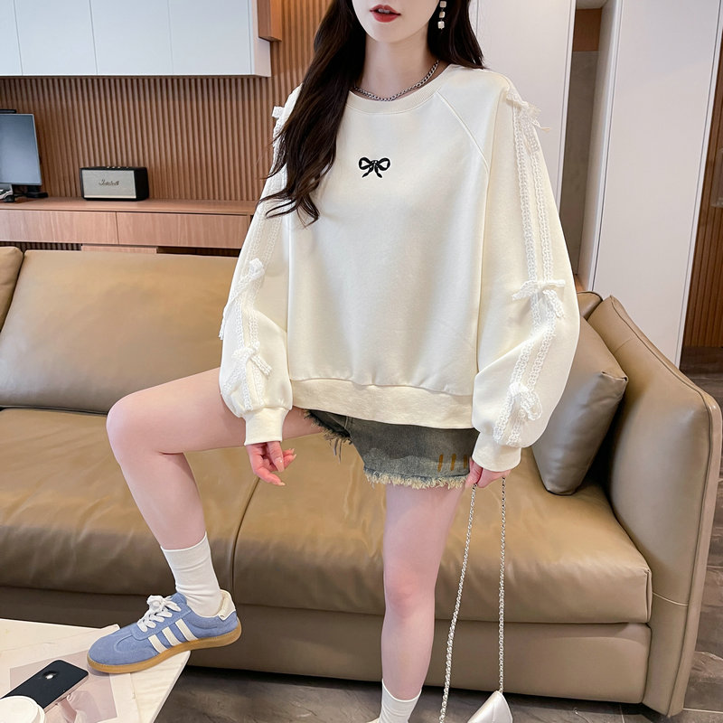 蕾丝花边蝴蝶结卫衣女2025新款春秋季韩版宽松薄款初中生上衣外套
