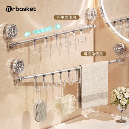 吸盘式毛巾架可伸缩转角浴室挂钩毛巾置物架卫生间免打孔毛巾挂杆
