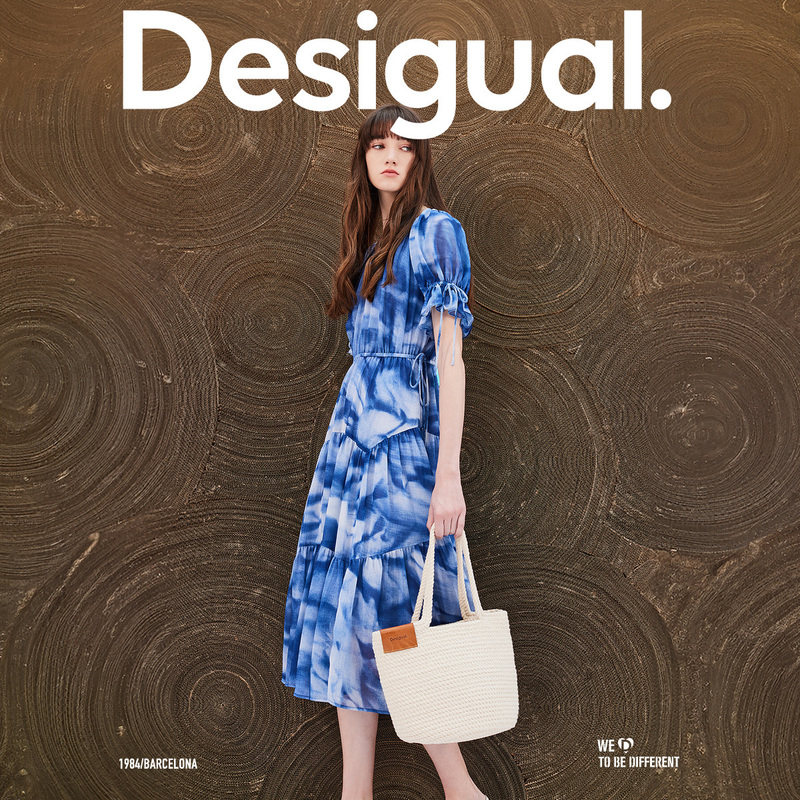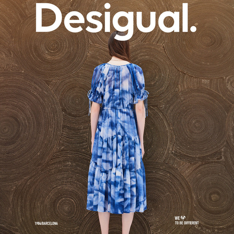 Desigual地中海波西米亚风印花内搭吊带裙中长款连衣裙