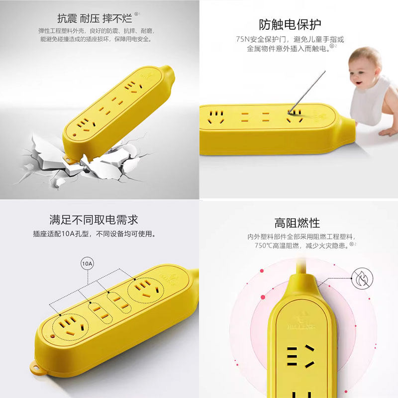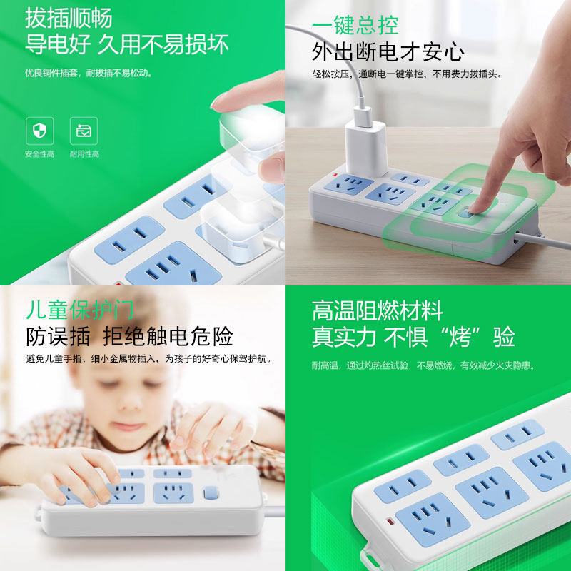 公牛插座不带线插排大功率插线板家用带开关自接多孔无线接线板