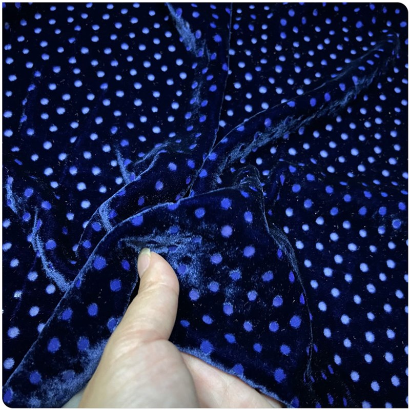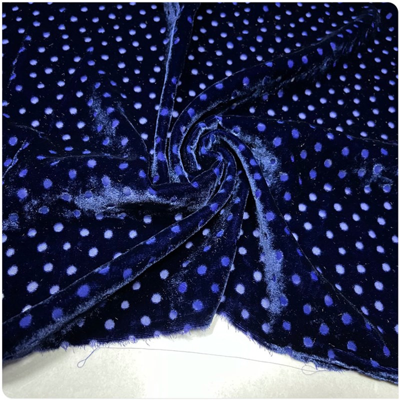 蓝色小波点镂空真丝绒烂花桑蚕丝绒布料旗袍连衣裙衬衣服装面料