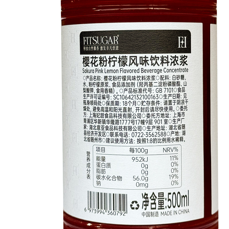 FITSUGAR樱花风柠檬风味饮料浓浆果汁DIY鸡尾酒咖啡拿铁饮品店