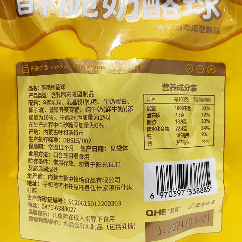 QHE其嘉酥脆奶酪球优脆乳奶泡泡30g儿童牛奶奶豆奶球可泡食小零食