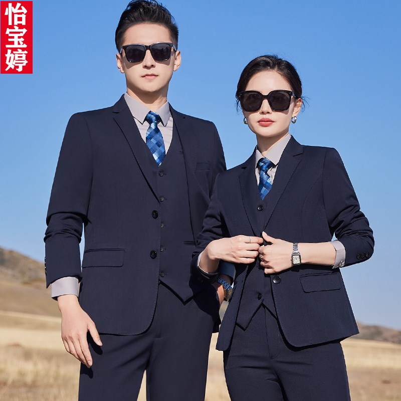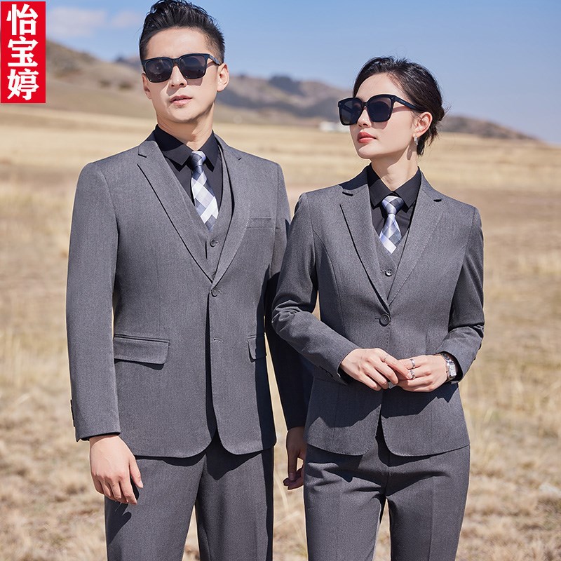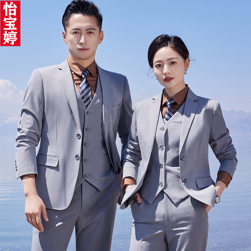 浅灰色西服套装男女职业正装春季4s店销售工装售楼部工作服西装