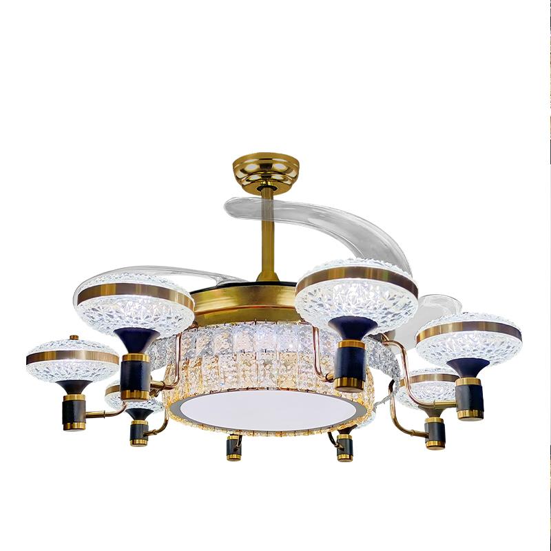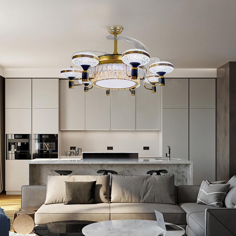 客厅水晶智能变频卧室餐厅隐形吊扇灯客厅大风力静音灯风扇吊灯
