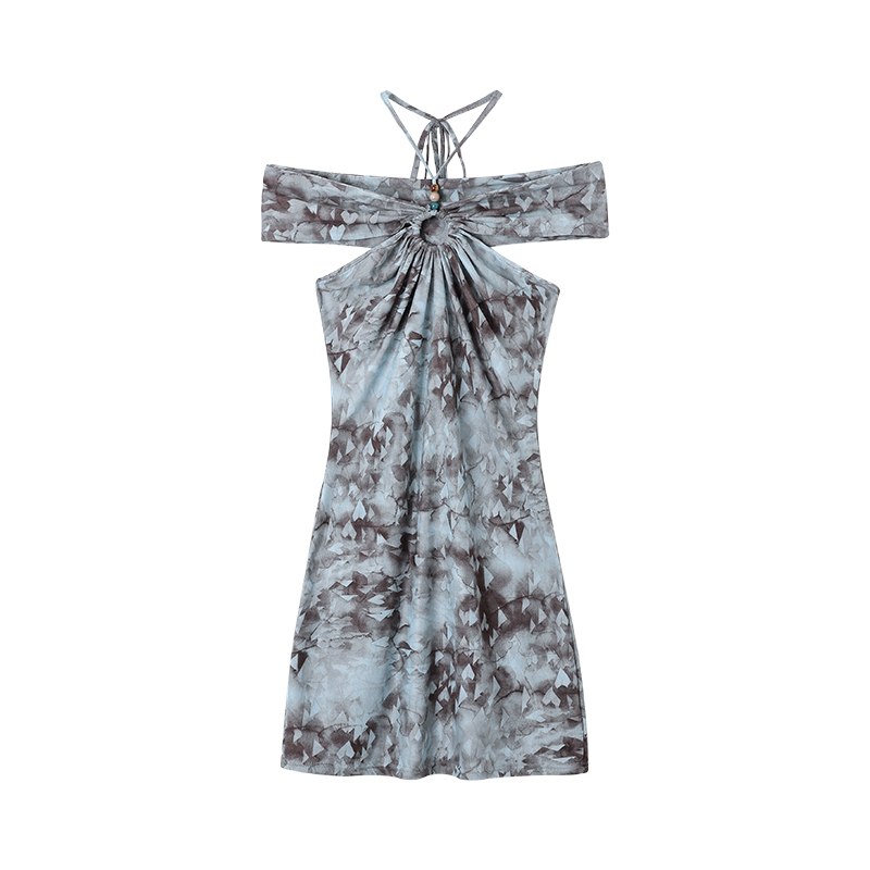 韩雨嘉【涩谷Y2K】蓝棕色复古晕染一字肩挂脖上衣*连衣裙系列