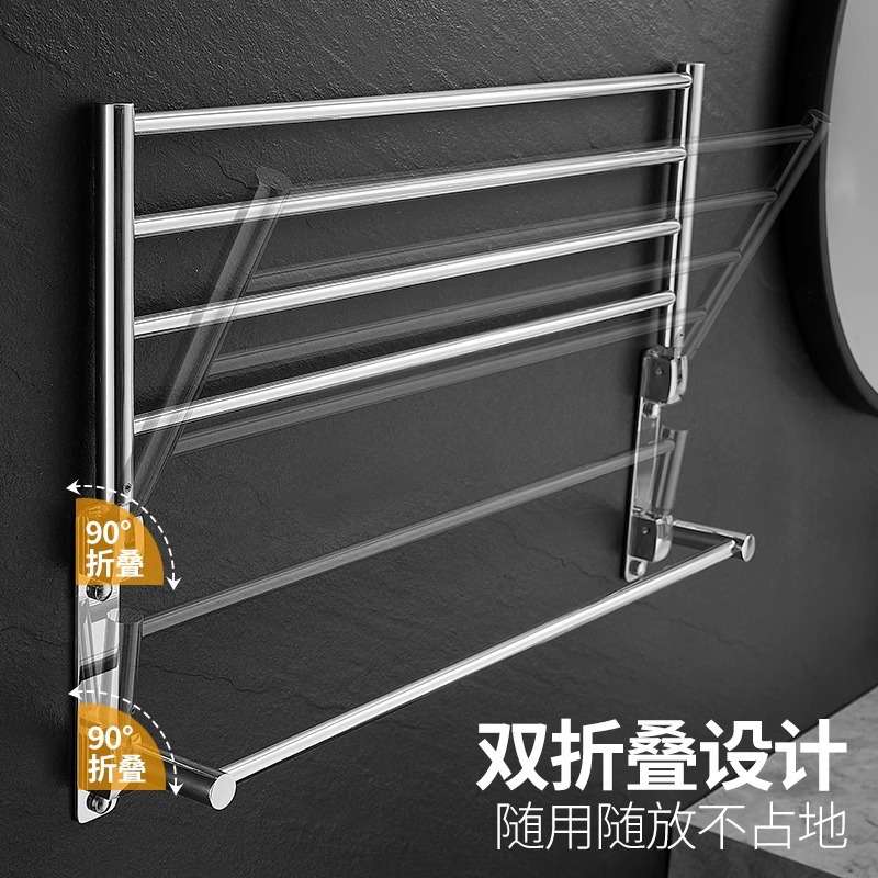304不锈钢折叠毛巾架浴巾卫生间浴室厕所挂架洗漱台置物架毛巾杆