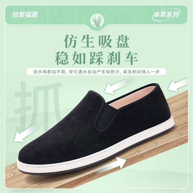 拾聚老北京布鞋男黑色乌拉草手工千层底一脚蹬中老年爸爸休闲男鞋