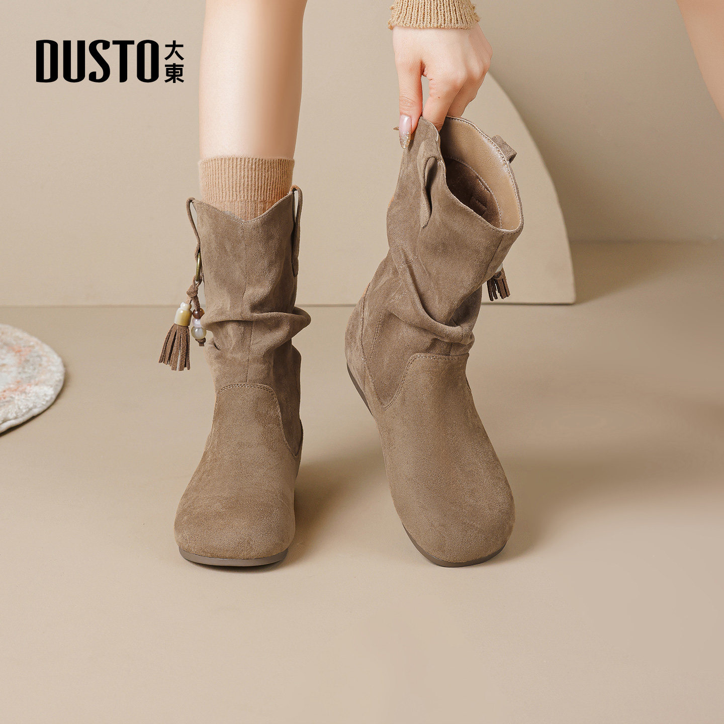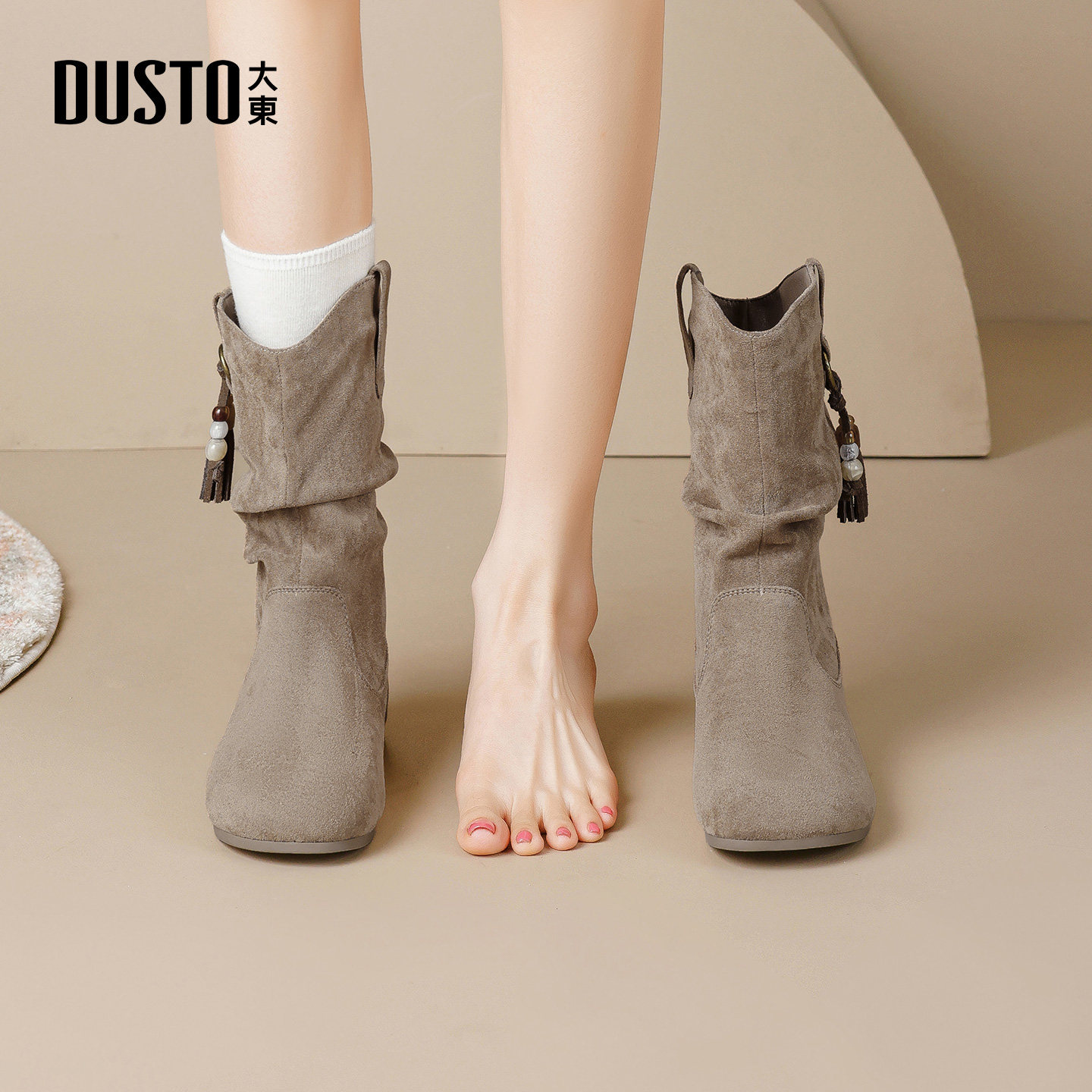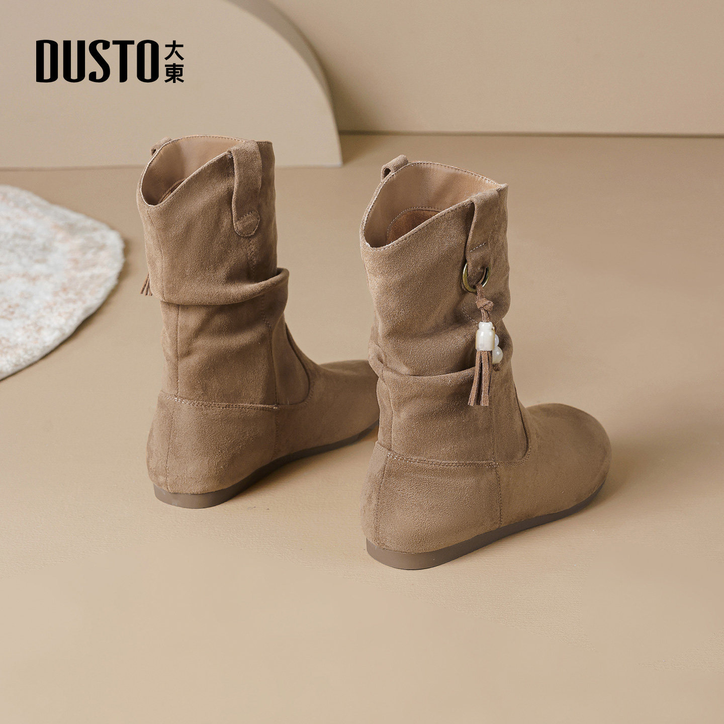 大东女鞋堆堆靴2025冬季新款复古绒面套筒女短靴圆头美拉德中筒靴