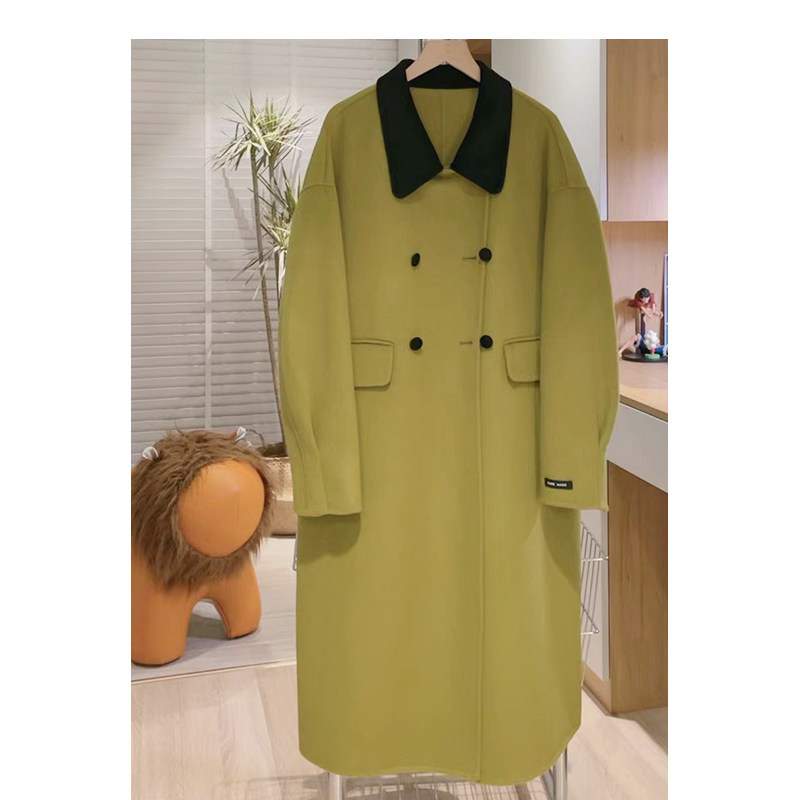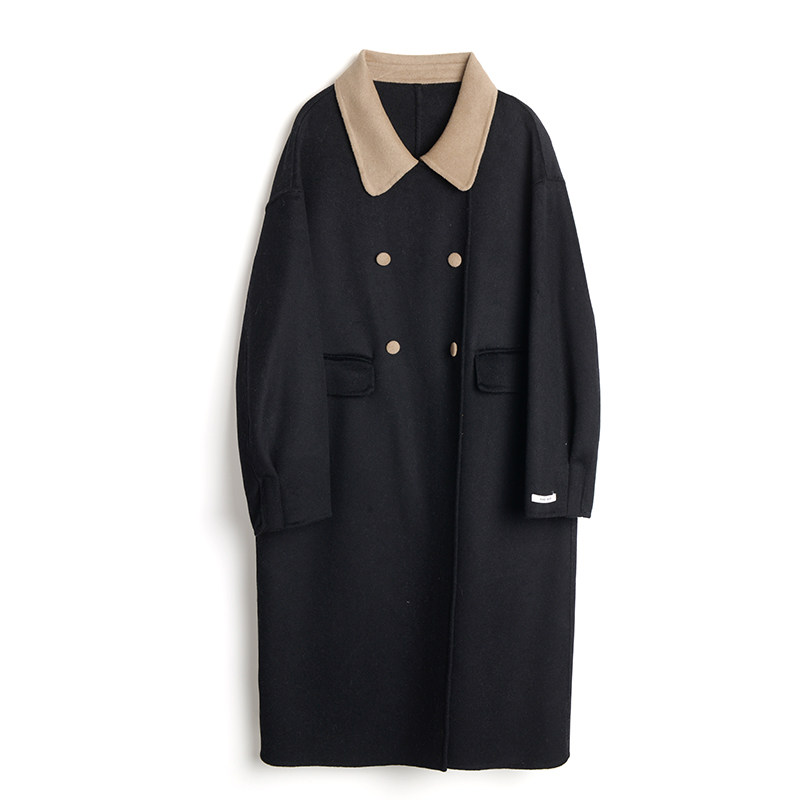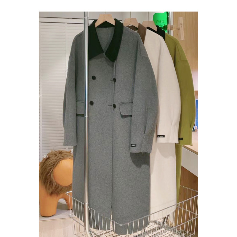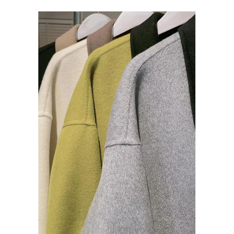 清仓 秋冬新款高支羊毛双面呢灰色大衣中长款复古翻领双面外套女