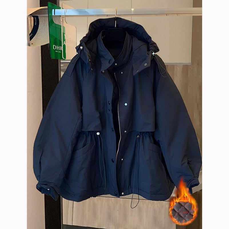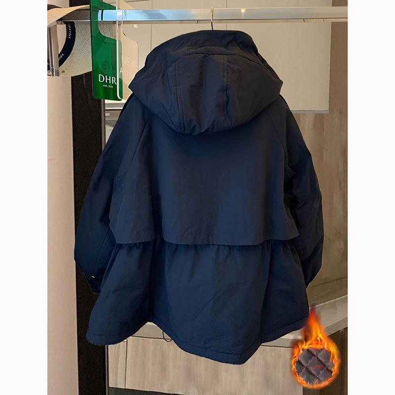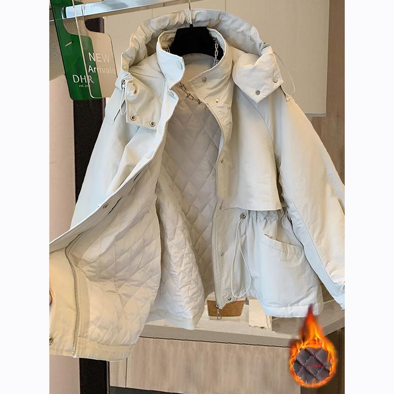 大码欧货站收腰冲锋衣女夹棉春季新款2025年女装时尚连帽棉服外套