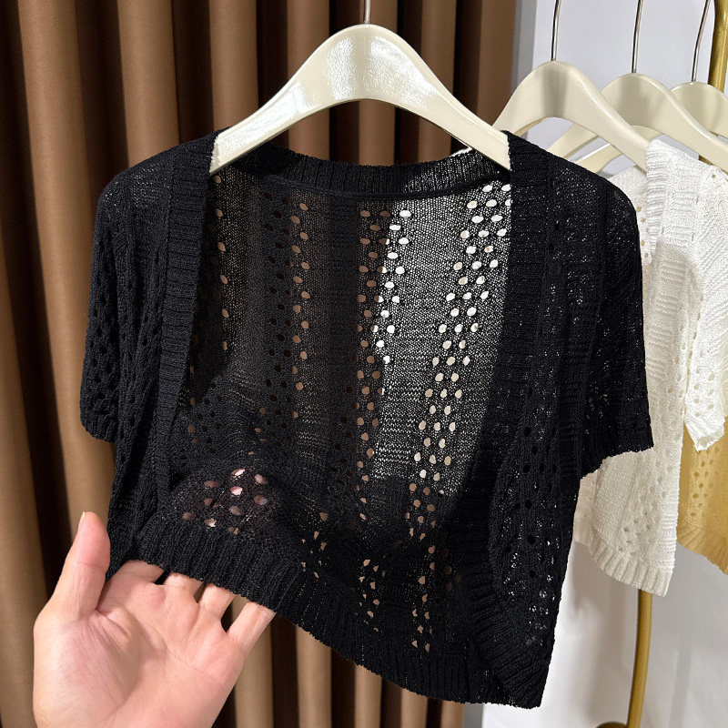 软糯针织短袖开衫女夏季短款披肩高级感吊带裙小外搭轻薄镂空罩衫