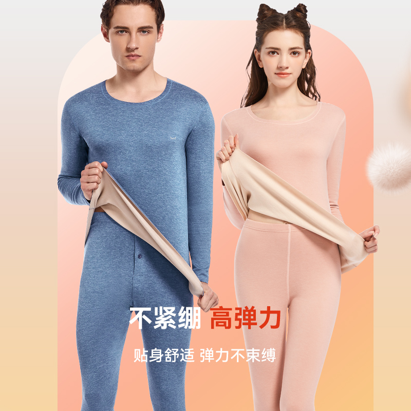 猫人保暖内衣男士套装加厚加绒羽绒蚕丝打底秋衣秋裤女冬季