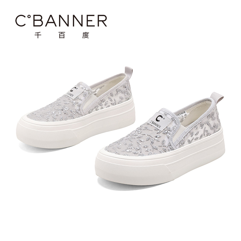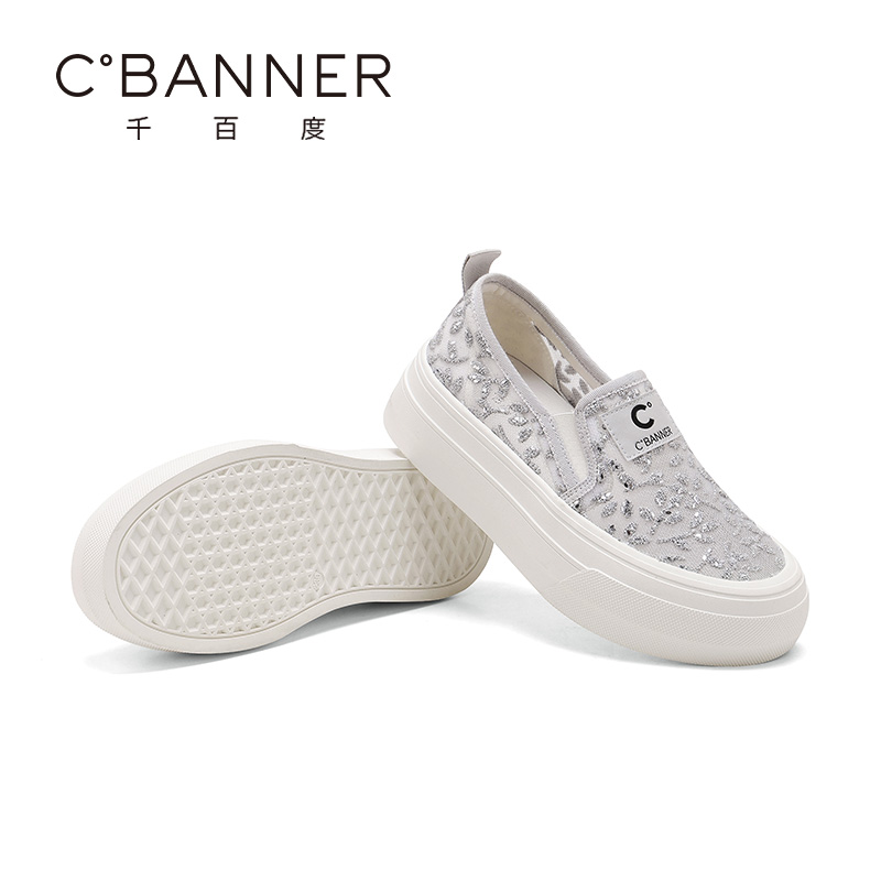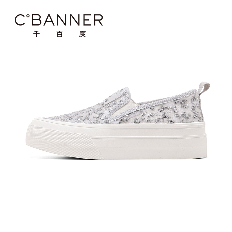 千百度女鞋2025夏季新款运动休闲透气网面鞋舒适厚底增高小白鞋女