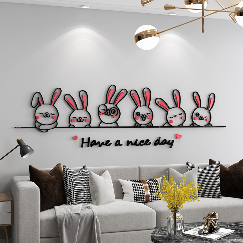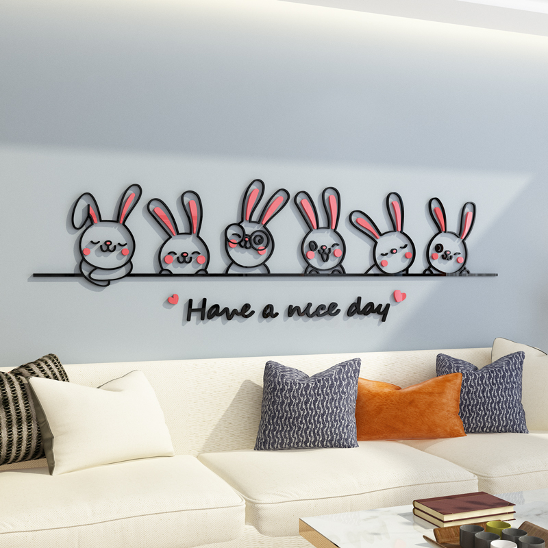 可爱卡通兔子3d立体墙贴画客厅沙发背景墙面装饰卧室床头布置贴纸