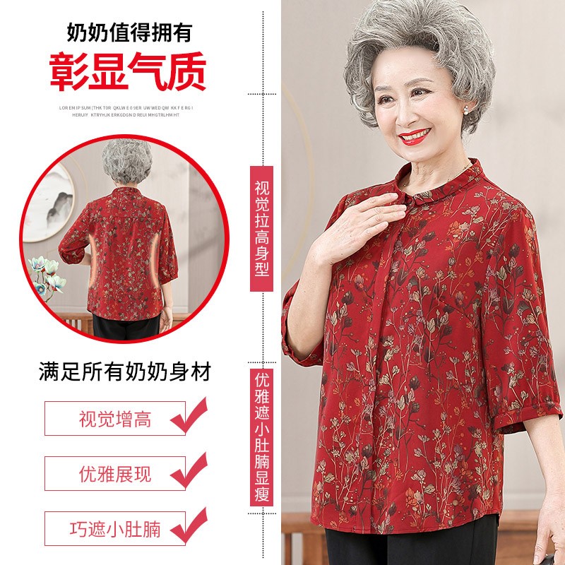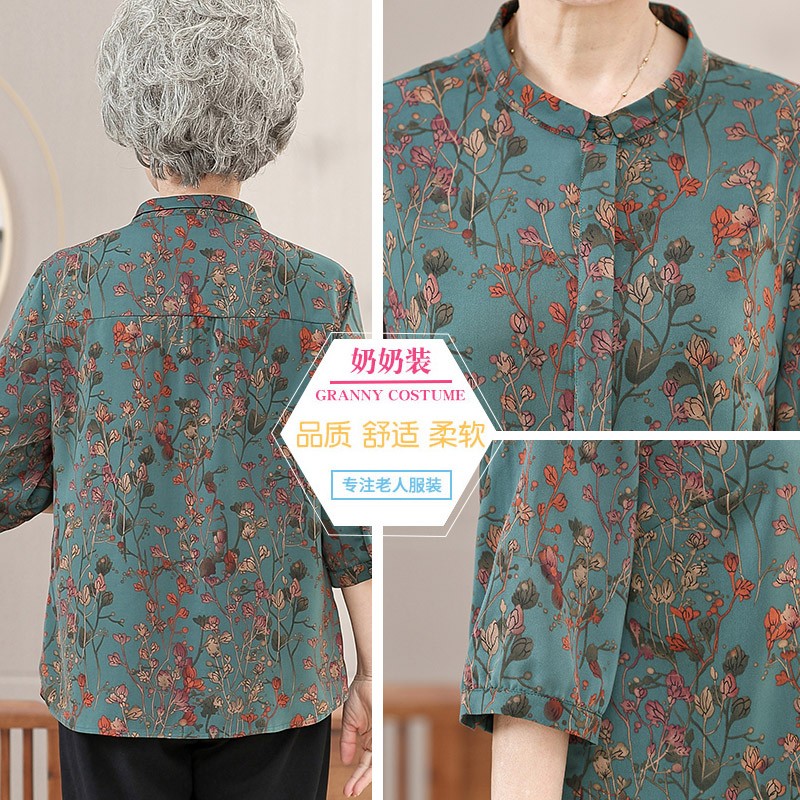 中老年人春夏装女衬衫洋气奶奶老太太老人大码衣服妈妈七分袖衬衣