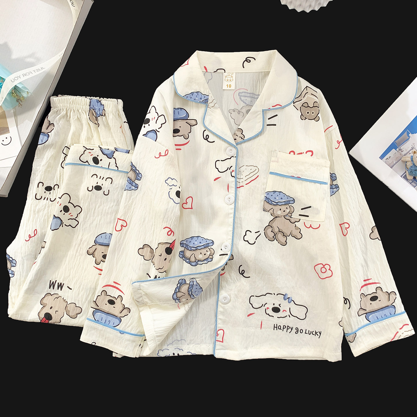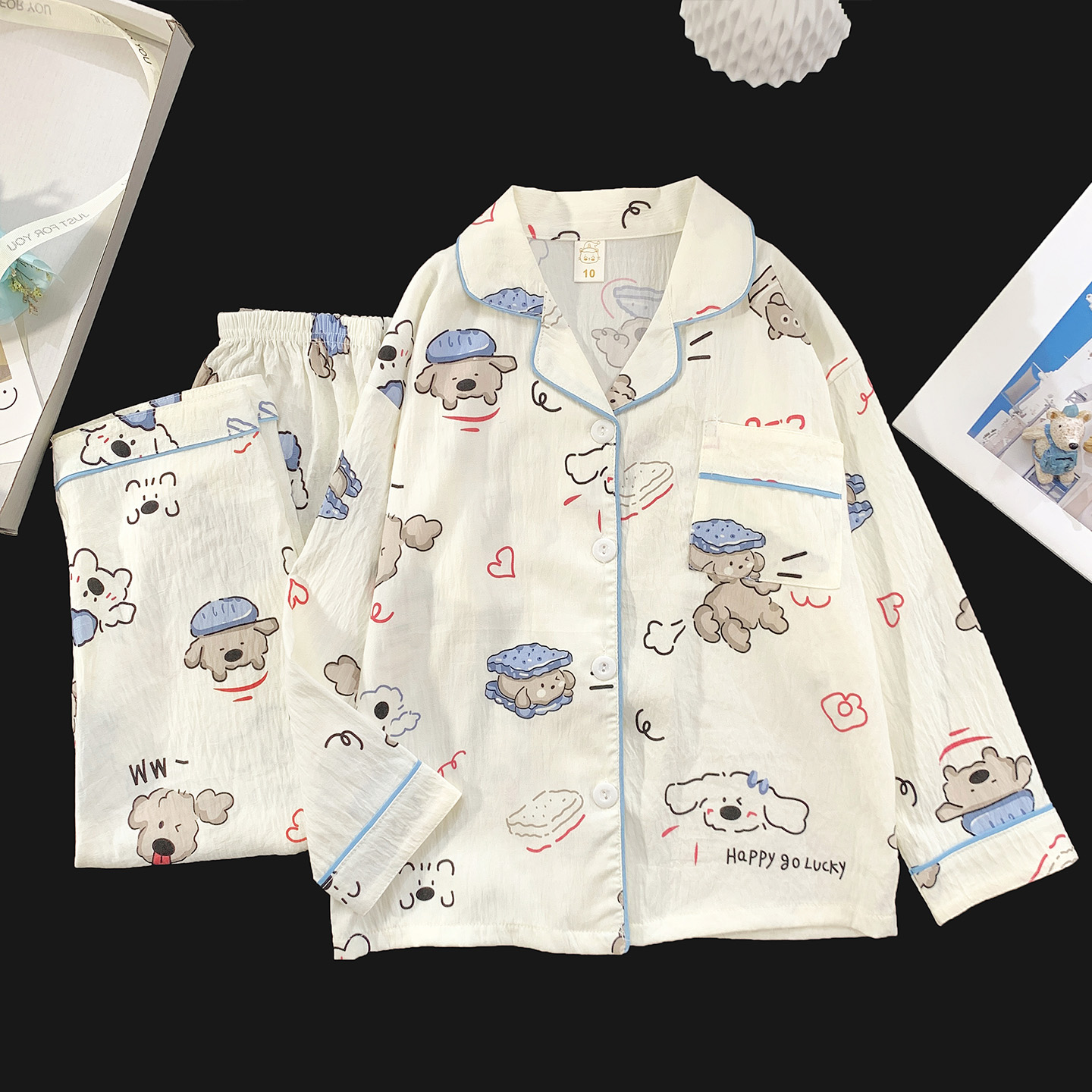 男童睡衣春秋季纯棉薄款长袖套装儿童男孩大童2025新款家居服夏款