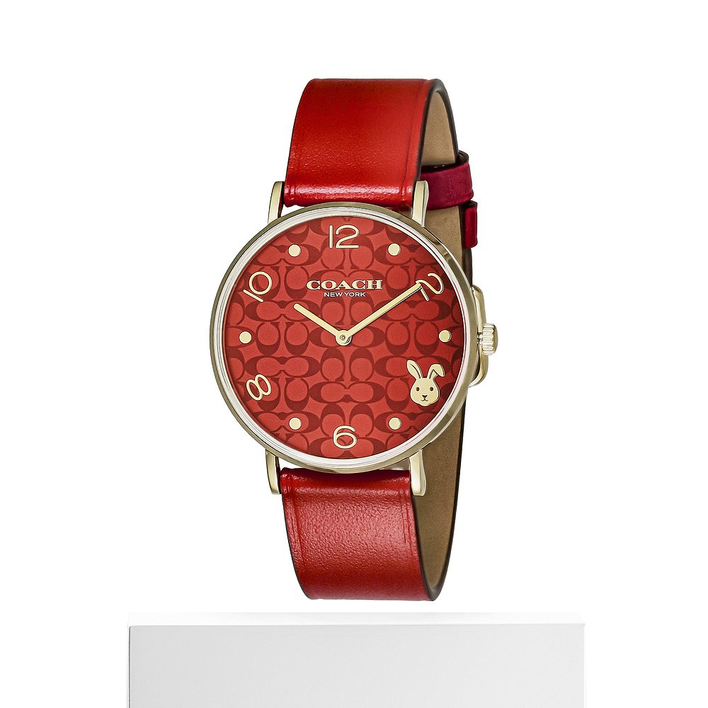日本直邮Coach蔻驰女士石英腕表 紅色皮革表带礼盒款 14503977