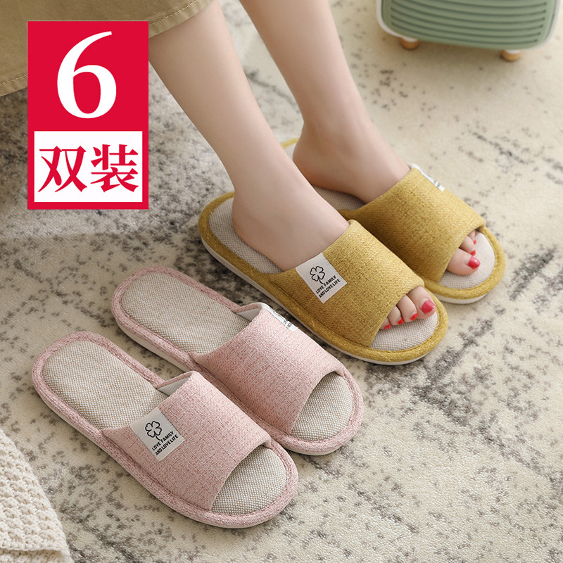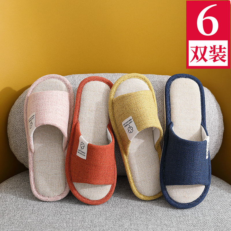 6双装夏季情侣款亚麻拖鞋女室内外待客家居家用四季防滑地板布男5