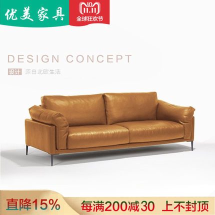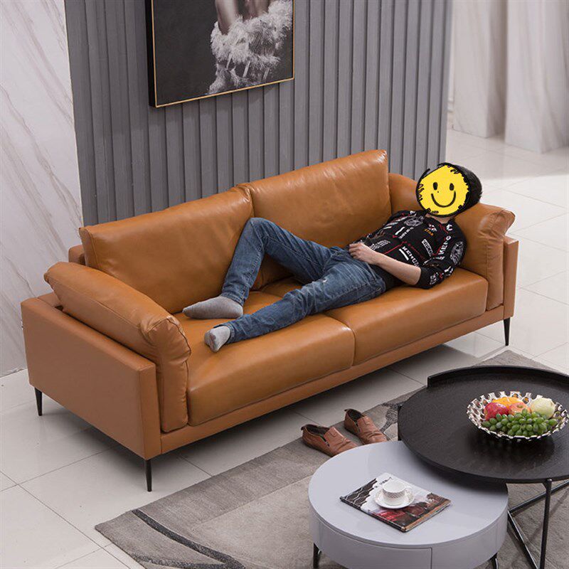 真皮沙发头层牛皮小户型直排三人位橙色意式极简客厅现代简约皮艺