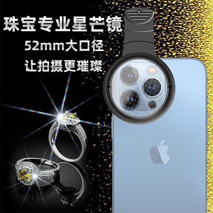 手机星光镜珠宝饰品钻饰火彩镜微距镜头直播闪光美甲耳饰美妆52mm