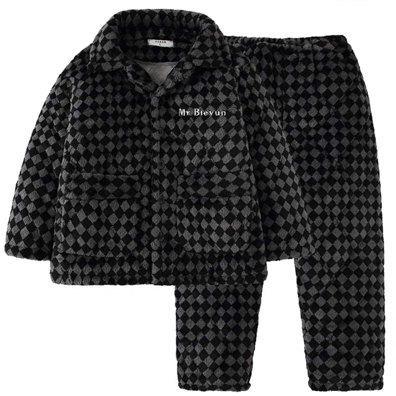 男童睡衣冬季加厚加绒珊瑚绒家居服套装儿童法兰绒保暖亲子装男士