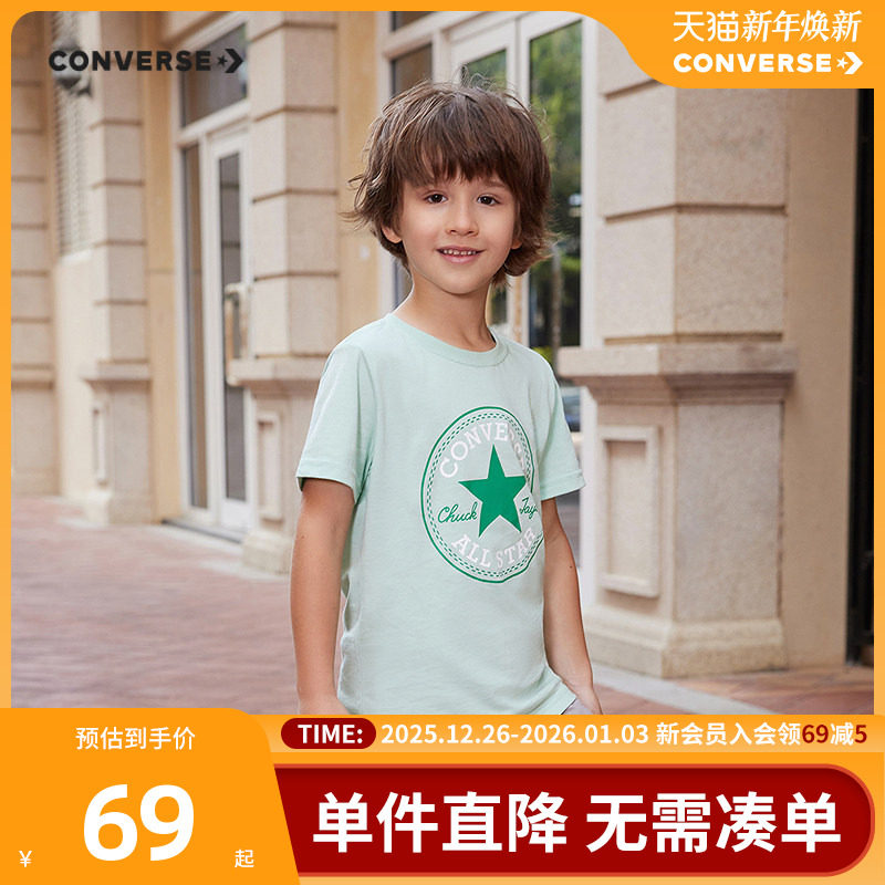 匡威儿童装男童短袖T恤2025新款夏季纯棉男孩中大童上衣潮牌半袖