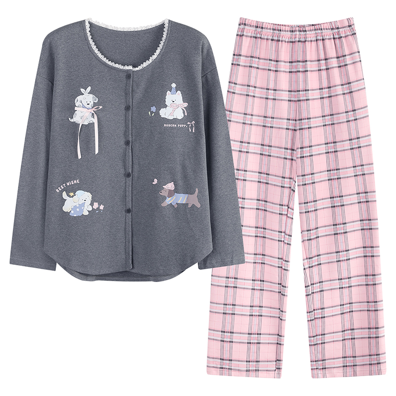 都市丽人纯棉睡衣女款秋冬带胸垫