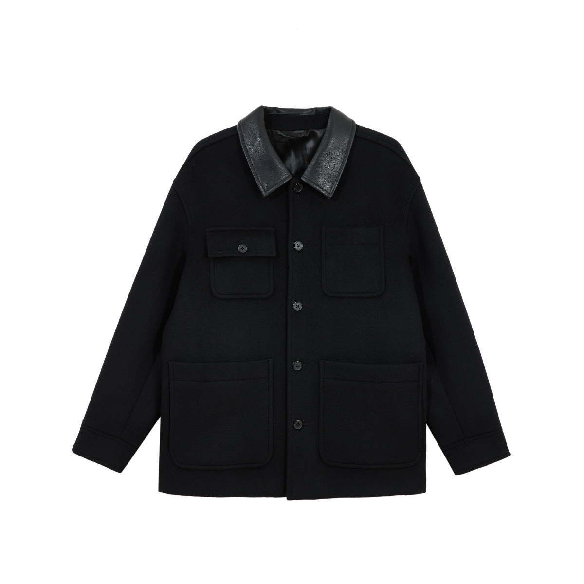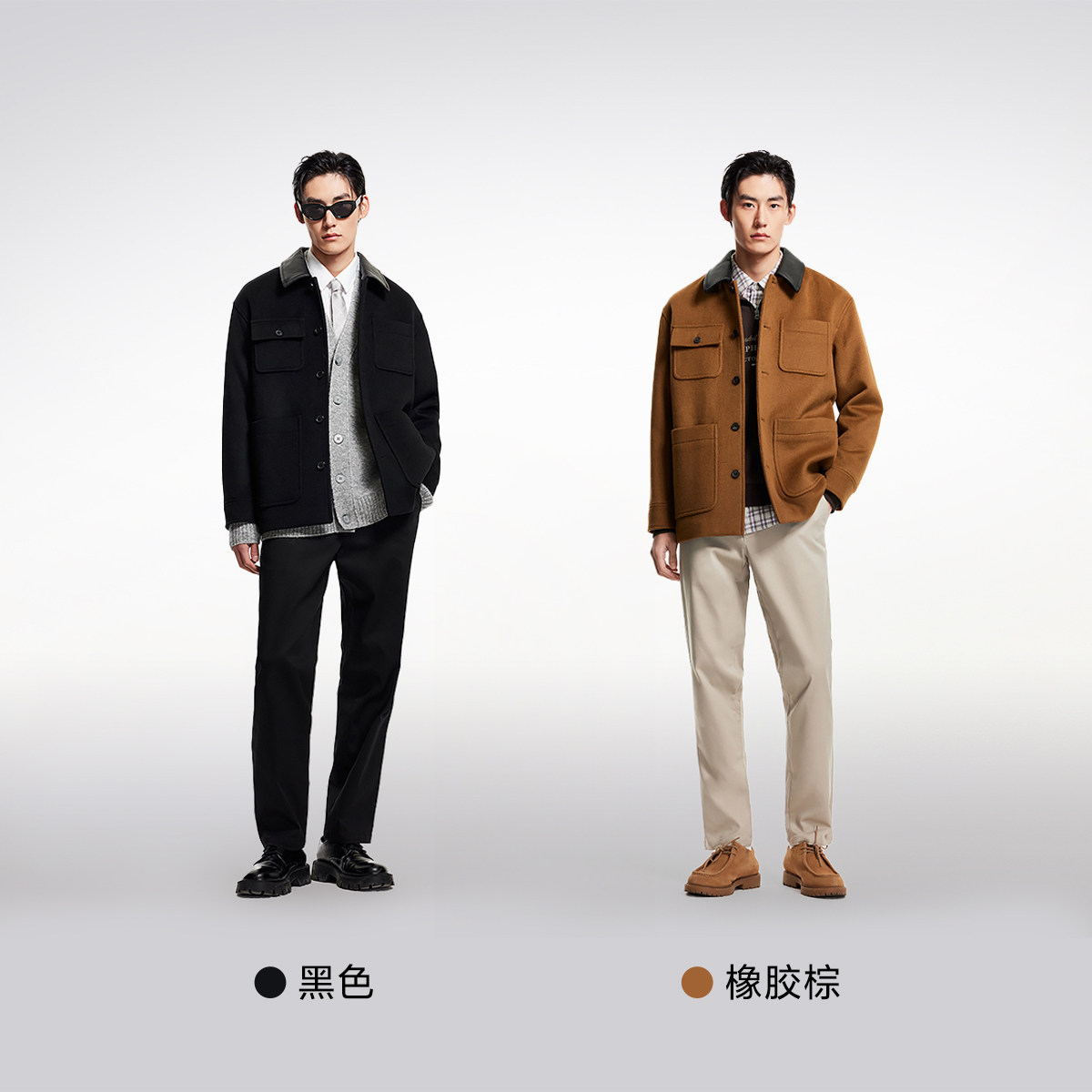 t区绫致杰克琼斯冬中长外套PU领多口袋羊毛混纺毛呢大衣男