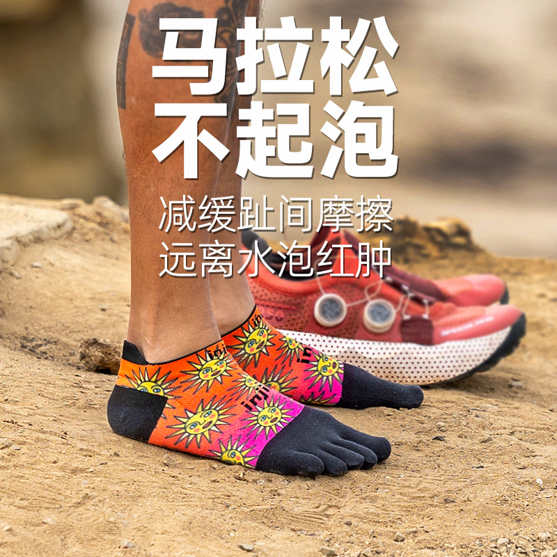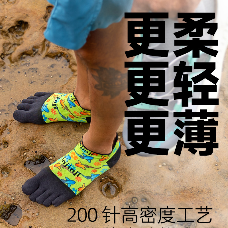 injinji印花五指袜25年设计限定短筒薄款coolmax运动跑步分五趾袜