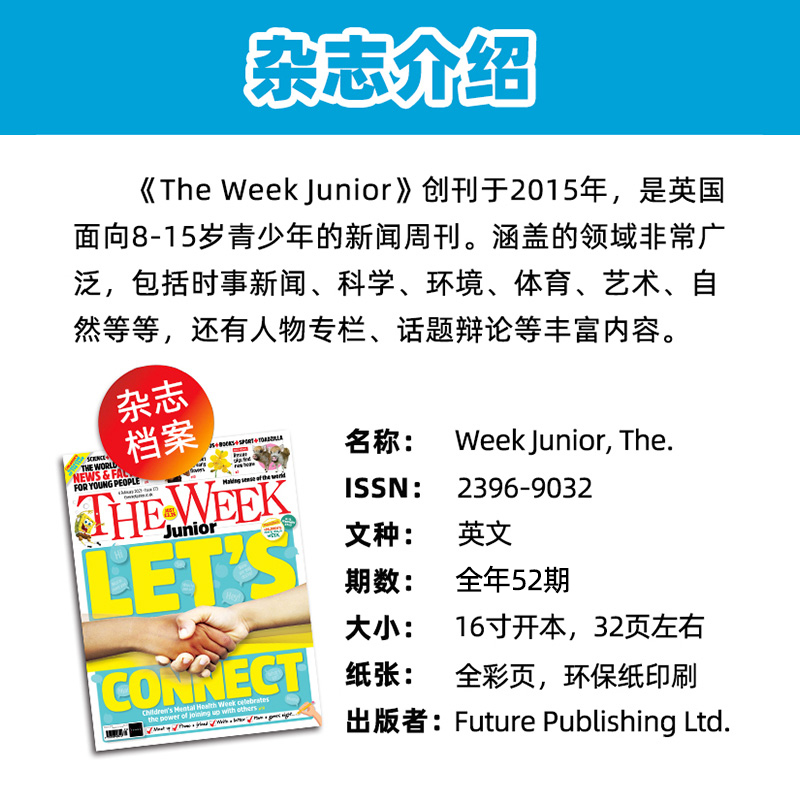 【单期/年订购】The Week Junior 2025/26全年52期订阅 英国原版8-15岁青少年英文学习周刊新闻时讯杂志儿童英语国外2024过刊杂志