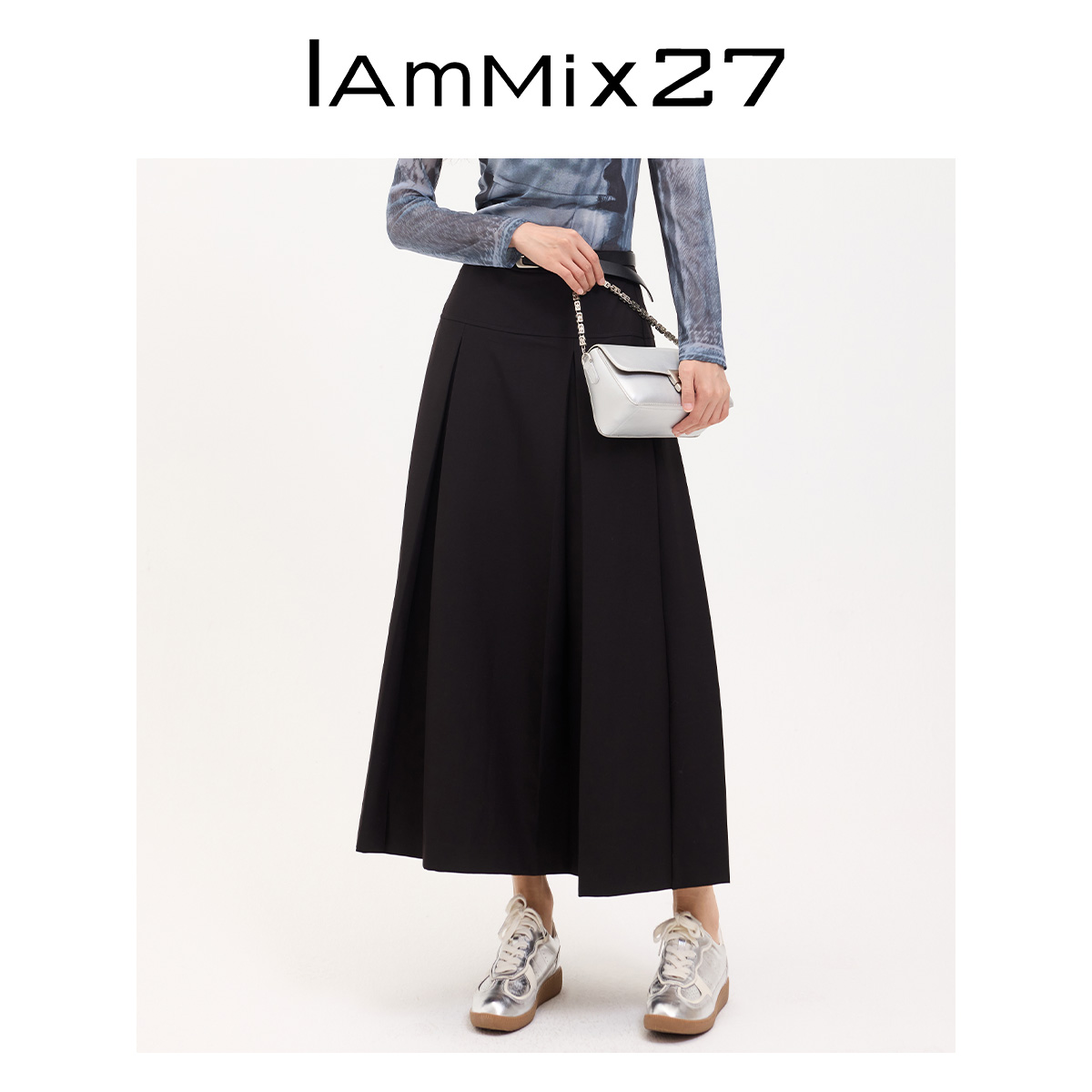 IAmMIX27春秋黑色半身裙女高腰修身优雅百搭及脚踝西装裙女长裙子